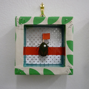Süßer brauner Käfer mit leicht grünlichem Schimmer zeigt Flagge! 6 x 6 x 3 cm